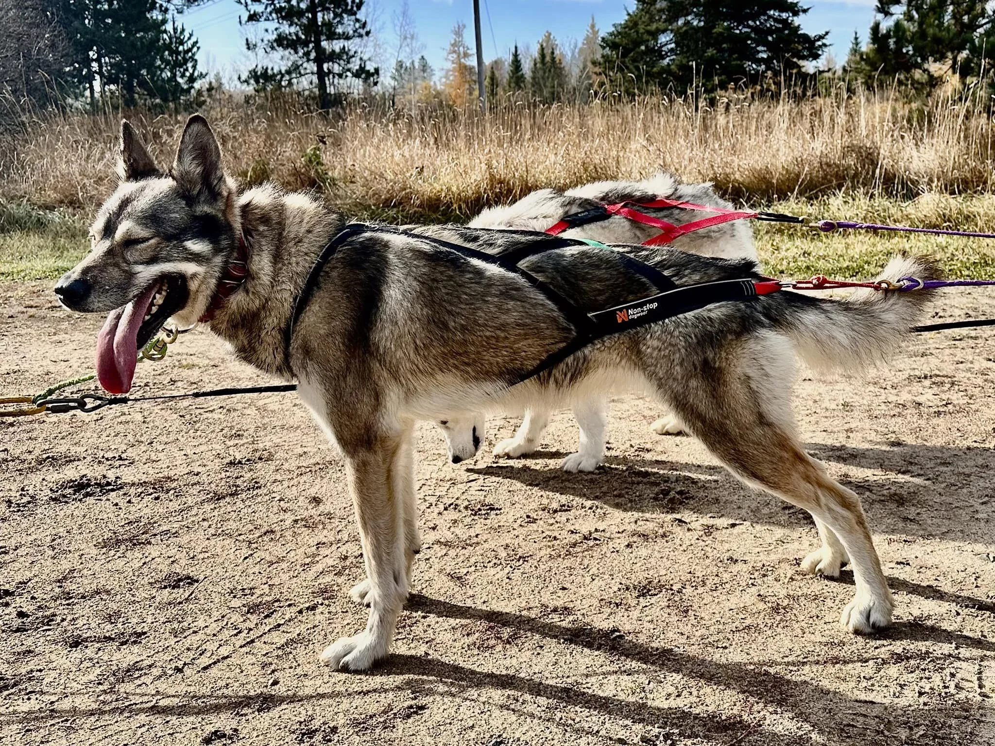 Dovahkiin is a Hedlund Husky outcross from Points Unknown. She is a team and wheel dog, who knows her commands quite well. She can be fussy about some female dogs, but is generally aloof towards other dogs. She is aloof towards strangers and prefers her own humans. Dovah lives to run in harness, but outside of working she also enjoys obedience work. Dovah thrives off structure and routine, and can sometimes be a bit environmentally sensitive, but often recovers quickly.