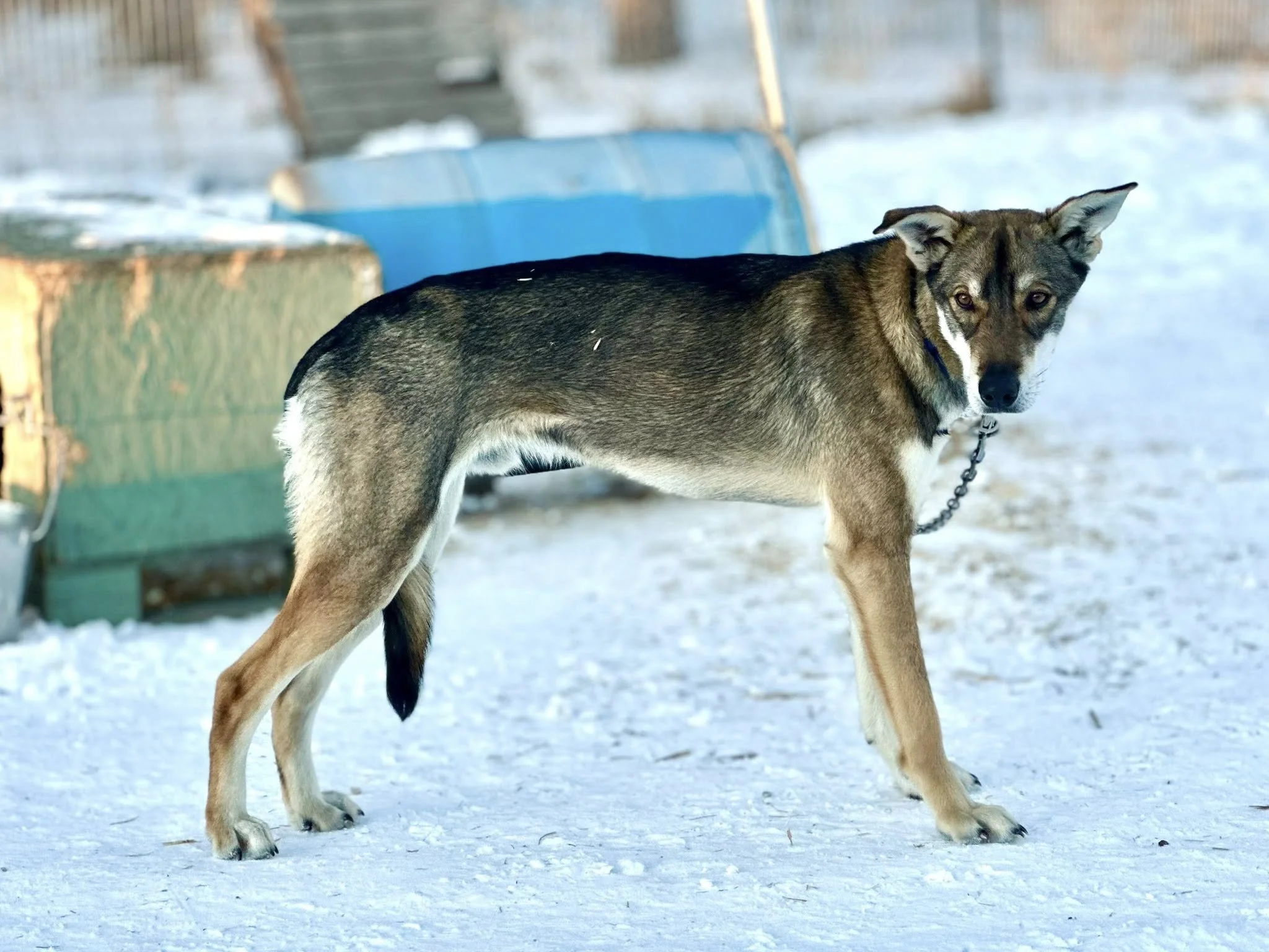 Jake is one of our up and coming yearlings who is showing promise of being a great lead dog! He is out of Marci and Flight Risk Mushing’s Compass. He is very focused and motivated to work. He is a nice neutral dog who minds his business and has only one goal- TO WORK. We are excited to see everything that Jake does, as he is a special little dog.